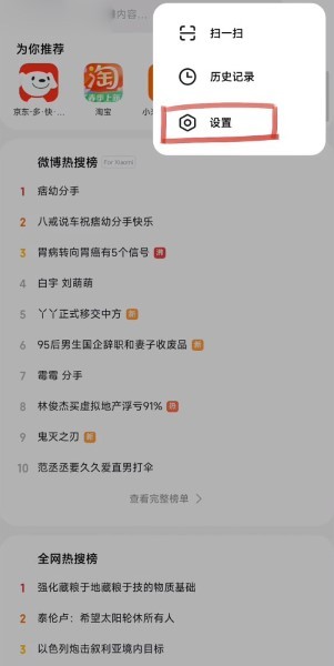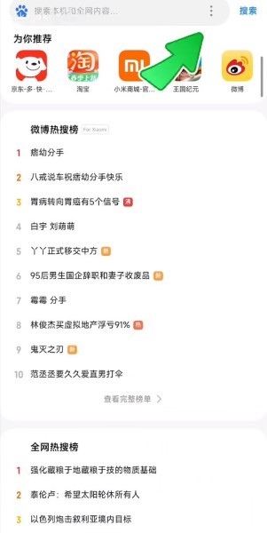 打开小米搜索软件,点击界面右侧的三个小点图标。