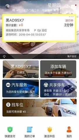 2、点击页面下方的“共享停车”。 开启使用权限后才能使用该功能。
