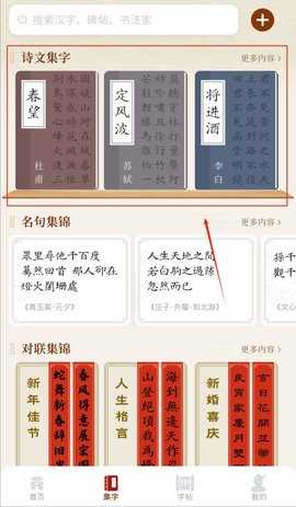 在诗歌板块中,学习经典作品,查看相关注释与译文,结合书法创作,进一步提升自身的文化修养与书法水平。