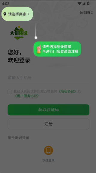 2、进入到登录页面后,你需要选择商家才能开始选购。点击相应商家的入口进入。