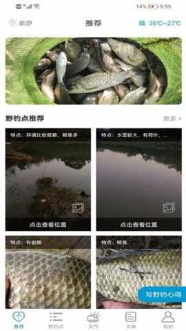 2、在“推荐”页面,可以浏览更全面的野钓点信息,发现更多选择。