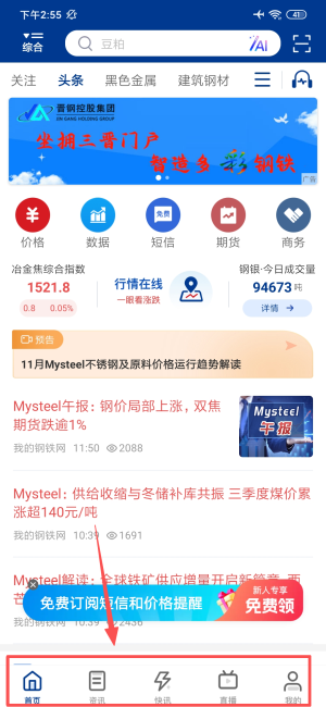 3、通过价格数据入口,可以查看钢铁行业的最新资讯动态。