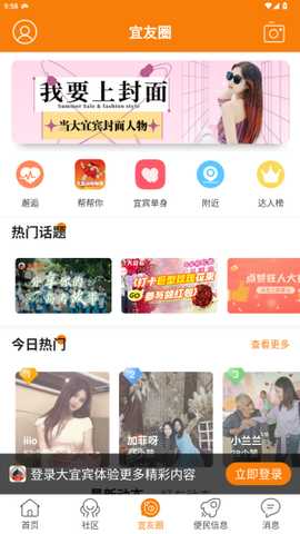 大宜宾app是一款人气颇高的社交软件,大宜宾官方版打造了丰富多样的功能,大宜宾最新版涵盖本地新闻资讯、吃喝玩乐推荐、求职招聘信息以及相亲交友服务等内容,几乎全方位覆盖了用户的日常生活场景,能有效提升用户的生活品质和社交体验。