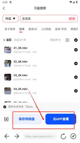 3、快速跳转到网盘页面,直接保存资源到网盘就能下载了。
