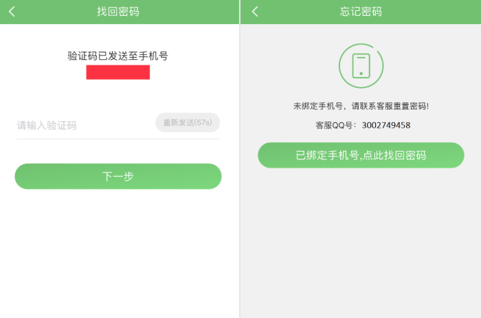 绑定的手机号也可以用于找回密码,用户只需点击已绑定手机号,点此找回密码,输入收到的验证码即可重置密码。