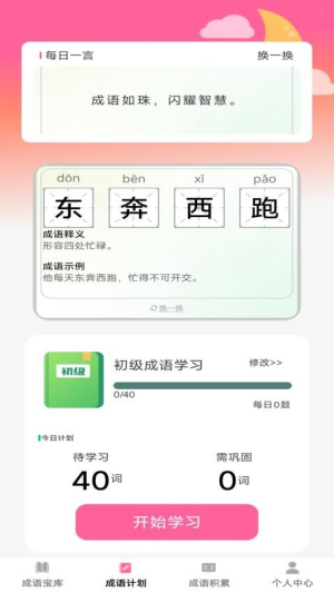 打开后进入学习计划模块,根据个人情况设置每日学习目标,以便更好地进行成语学习。