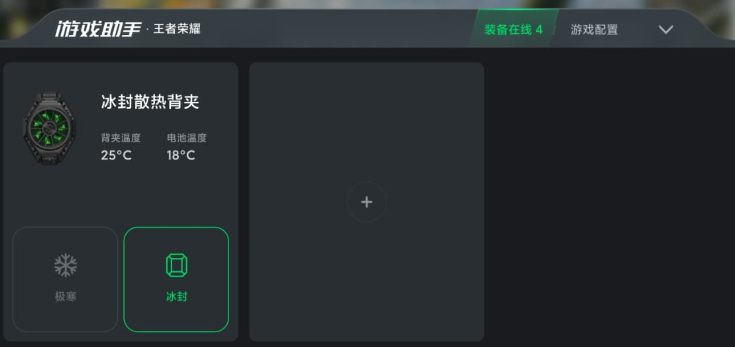 在游戏过程中,通过游戏助手打开装备在线,通过背夹卡片可以实时查看背夹和手机电池的温度表现情况。