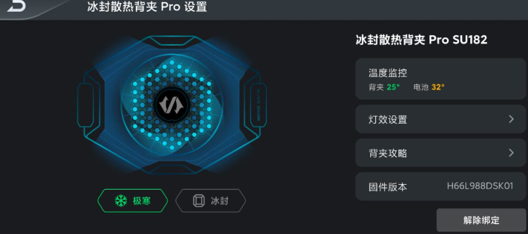背夹通过装备箱连接至手机后,可在装备箱中调节灯效、更新固件等操作。