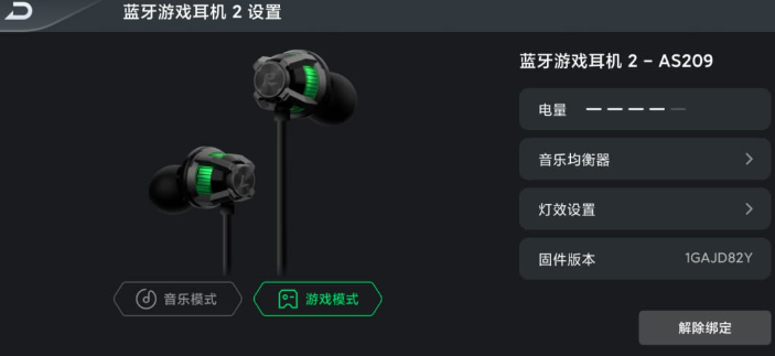 耳机通过装备箱连接至手机后,可在装备箱中调节灯效、更新固件、切换模式等操作。