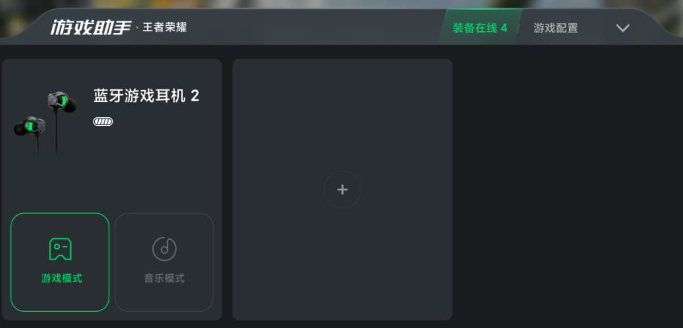 在游戏过程中,通过游戏助手打开装备在线,通过耳机卡片可以实时查看耳机的电量情况和模式情况。