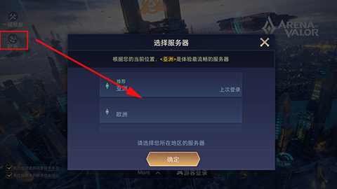 2、可在游戏主界面的左上角切换不同的渠道,其中包括亚、美、俄罗斯、中东、印度等多个地区;