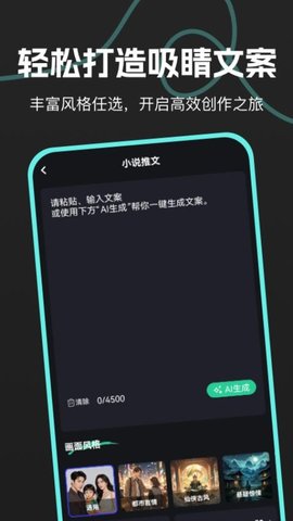 一键创作:快速生成小说推文视频,将关键情节与视频内容结合,适合推广与分享。