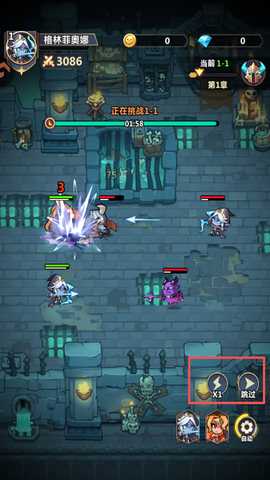 3、在战斗中,滑动屏幕可以调整队伍的位置,用于躲避敌人的大招。点击屏幕右下角的图标可以加速战斗或直接跳过。