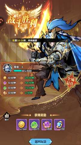4、战斗胜利后,会获得大量的金币和升级资源,助力角色成长。