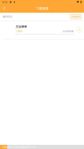 在下载管理界面,查看所有下载的小说进度,支持暂停或取消下载,便于用户灵活管理。