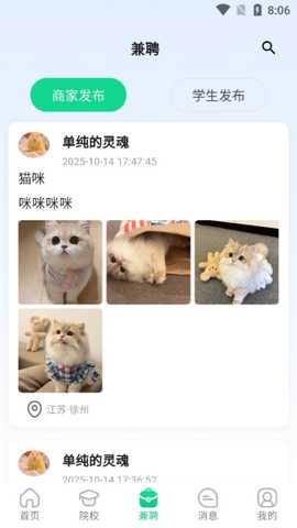 3、点击底部工具栏的“兼聘”,这里有丰富的兼职活动信息,为你的校园生活提供优质的兼职机会。