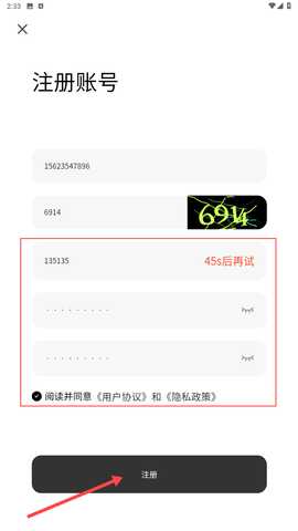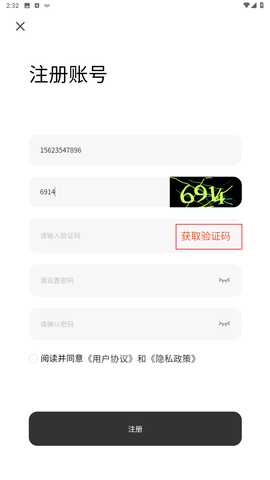 接下来点击获取验证码,系统将发送验证码到您的手机,输入验证码后设置并确认密码,点击注册完成账号创建。