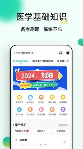 章节练习:所有医学基础知识科目的章节内容均可随意练习,帮助用户巩固基础知识。