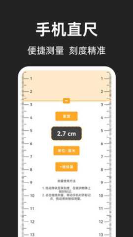 电子直尺:提供厘米和英寸单位的切换,用户只需滑动屏幕即可完成长度的测量,方便快捷。
