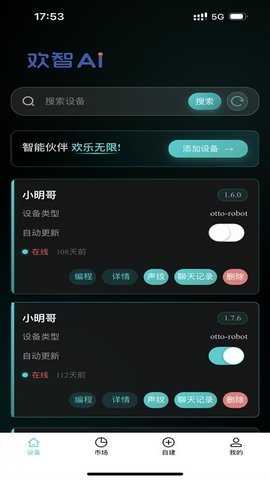 在本站下载欢智AI软件后,打开软件即可开始与智能机器人设备进行匹配连接。