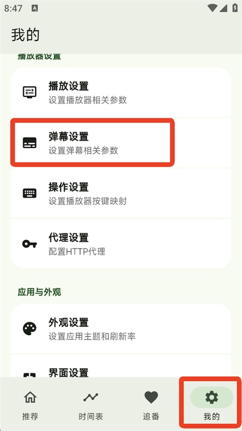 1、打开App,点击底部【我的】,滑到下方找到【弹幕设置】并点击进入。