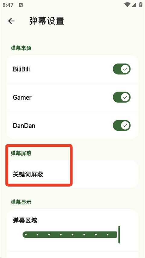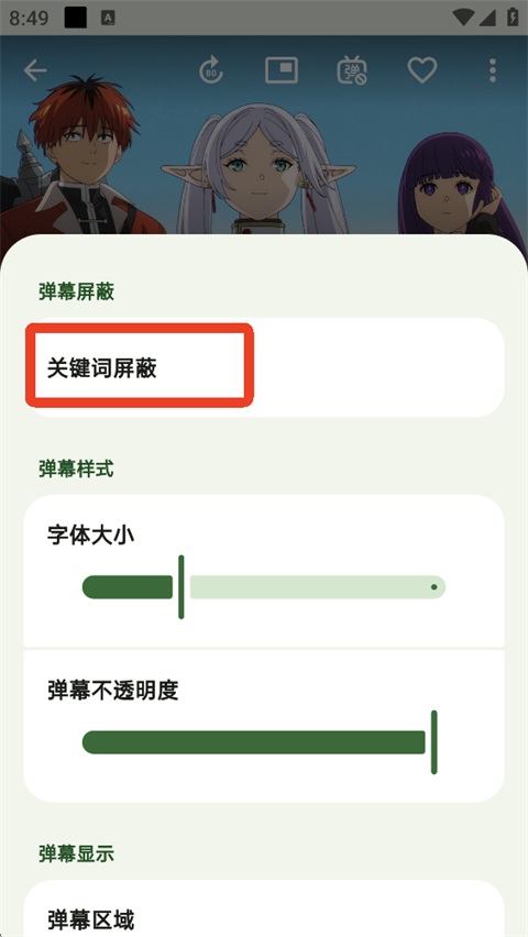 2、在弹幕设置页面中,选择【关键词屏蔽】。