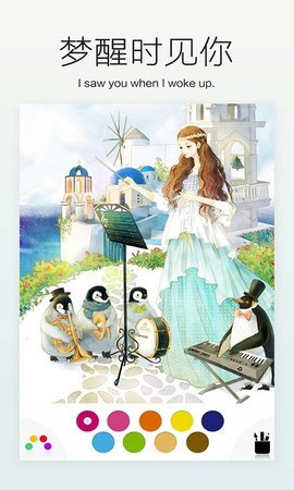 2、游戏中包含多种风格的画作,玩家可以根据心情和灵感选择不同的作品进行填色。