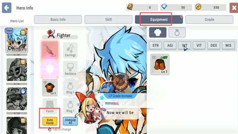 3、在背包中,选择【Equipment】(装备)一栏,然后点击【Auto Equip】(自动装备),系统便会自动为您的角色穿戴上新获得的装备。