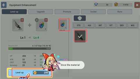 5、要提升战斗力,玩家需要强化武器。在背包里,升级武器(例如刀)需要消耗额外的同类武器和经验石。