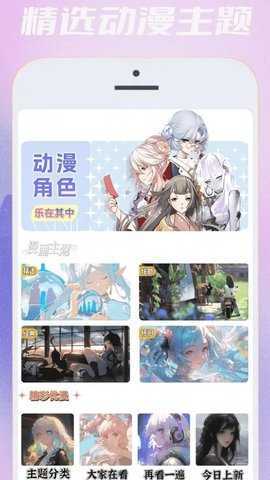 切换至动漫壁纸专栏,用户可选择热门 IP 或主题分类,预览各种图片,找到自己心仪的壁纸资源。