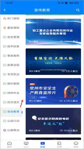 进入学习培训模块后,一键报名各类培训课程,系统会提供不同类型的应急知识供用户学习。