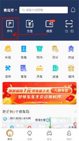 在首页点击停车可以进入停车/充电服务。