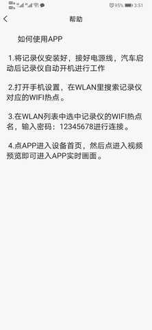 用户需要在手机的WLAN设置中找到记录仪的Wi-Fi热点,输入正确的密码进行连接,连接成功后即可使用软件。