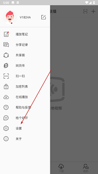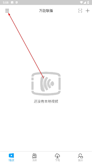 需在下方导航栏中选择播放、快传、下载或我的页面,点击播放页面右上角的+号,进入视频播放设置。