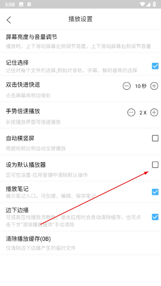 4、找到设为默认播放器选项,勾选开启默认播放器功能。