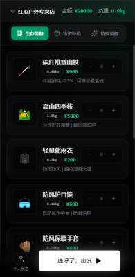 在开始冒险之前,需要根据自己的资金情况,购买各种生存装备。这些装备对于成功通关至关重要,合理的选择将直接影响到后续的生存体验。