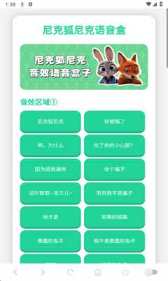专注于疯狂动物城的角色语音内容,听到狐尼克、兔朱迪等角色的经典台词,带来极致的沉浸感。