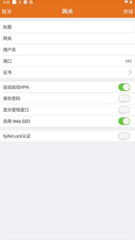 完成配置后,点击右上角的存储以保存设置。首次登录时,可能会出现证书错误提示,用户可选择继续。之后,输入校园信息门户的密码,点击登录即可。