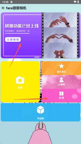 在本站下载并安装face甜甜相机后,将看到首页的多种功能选项。