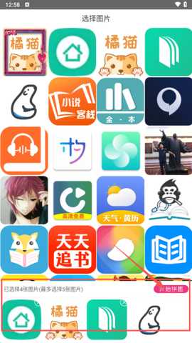 选择拼图功能,点击进入后,系统会引导您选择需要拼接的图片,最多支持五张。