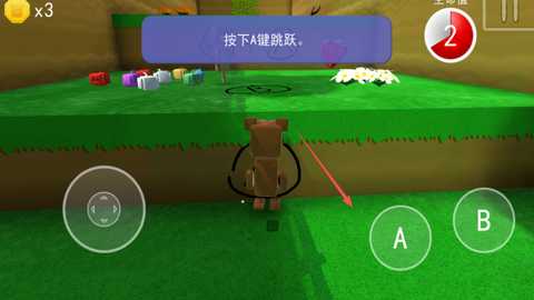 2. 按下屏幕右侧的“A”键,角色会进行跳跃,这是登上台阶的必要操作。