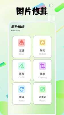 具备图片裁剪、配色等多项编辑功能,内置大量贴纸和滤镜,能够优化图片纹理,增强整体视觉效果。