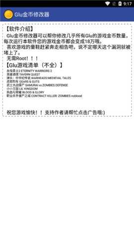 多游戏支持:几乎所有glu游戏都可以使用此工具进行金币修改,覆盖面广。