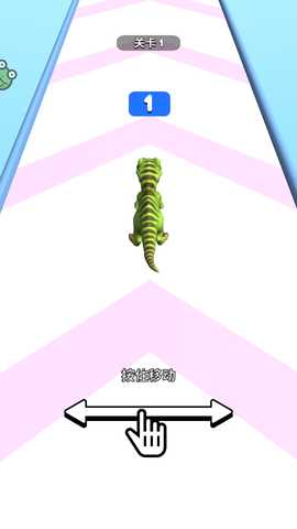 在初始关卡中需要按照提示控制绿色恐龙左右移动,避开路上的障碍物,收集沿途的道具,积累力量。