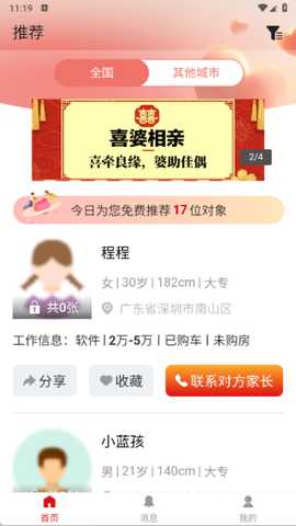 在本站下载喜婆相亲软件,安装完成后,打开首页,可以选择全国范围或特定城市查看用户。