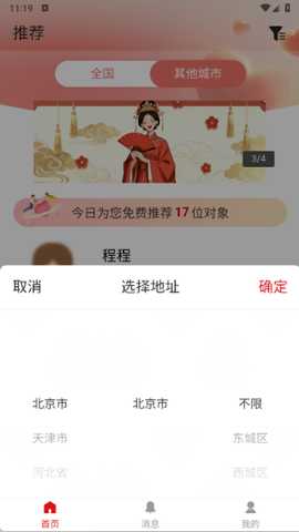 如果选择其他城市,需进一步选择所在城市地区,以便系统推荐同城用户。