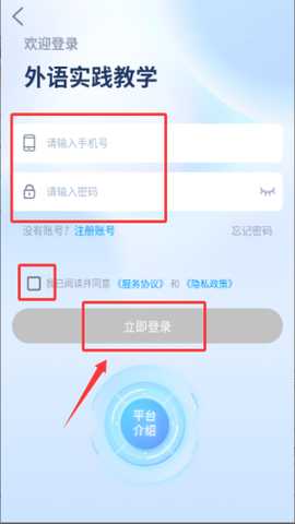 2、输入手机号与密码并勾选协议,完成登录验证。