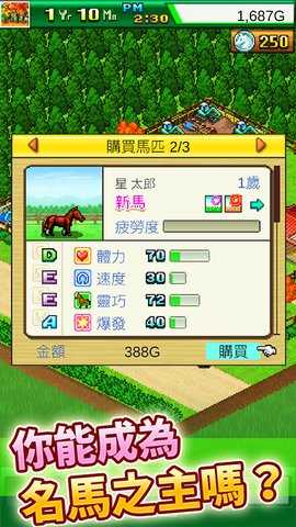 可以通过简单的操作管理牧场,进行马匹的饲养、训练和比赛,提升经营效率。
