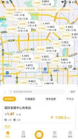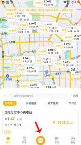 2.来到首页,找到最近的充电桩。