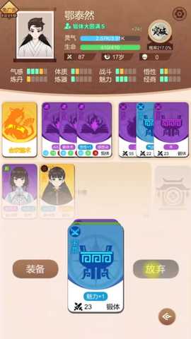 游戏中设有丰富多样的卡牌类型,包括功法、角色、奇物和事件。可以根据不同的战斗需要进行策略组合,创造出独特的战斗风格,提升整体实力。